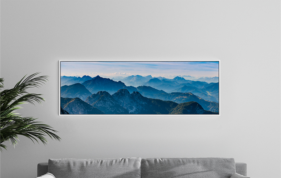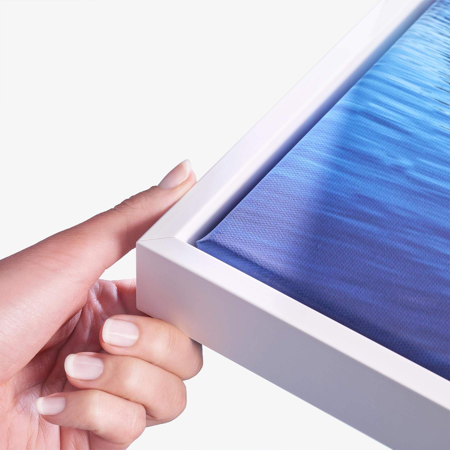 Valitse kehys canvas-tauluusi täydentämään kuvan värisävyjä ja sopimaan taustaan. Valkoinen kehys erottuu kauniisti tummia ja värillisiä seiniä vasten, musta kehys sopii täydellisesti vaaleiden ja valkoisten seinien kanssa.