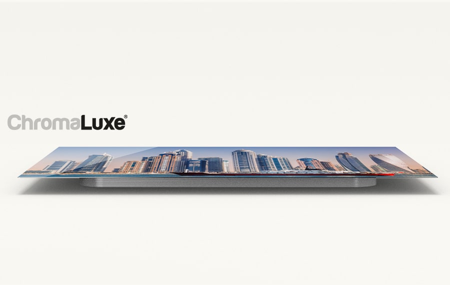 Valokuvasi siirretään erittäin ohuelle ChromaLuxe-alumiinilevylle lämmön ja paineen avulla. 1,1 mm paksu metallilevy näyttää tyylikkäältä ja kestää aurinkoa, likaa ja kosteutta läpi vuosien.