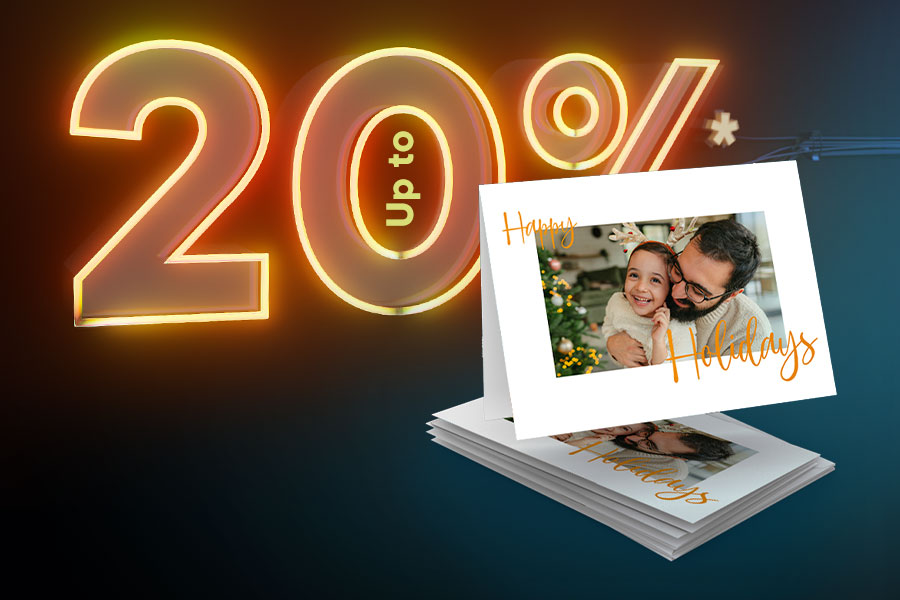 There’s no better moment to send warm wishes to your relatives, friends, and loved ones. Get 20% off when you order 2 or more sets of 10 photo greeting cards. Ordering just one set? You’ll still receive a 10% discount.