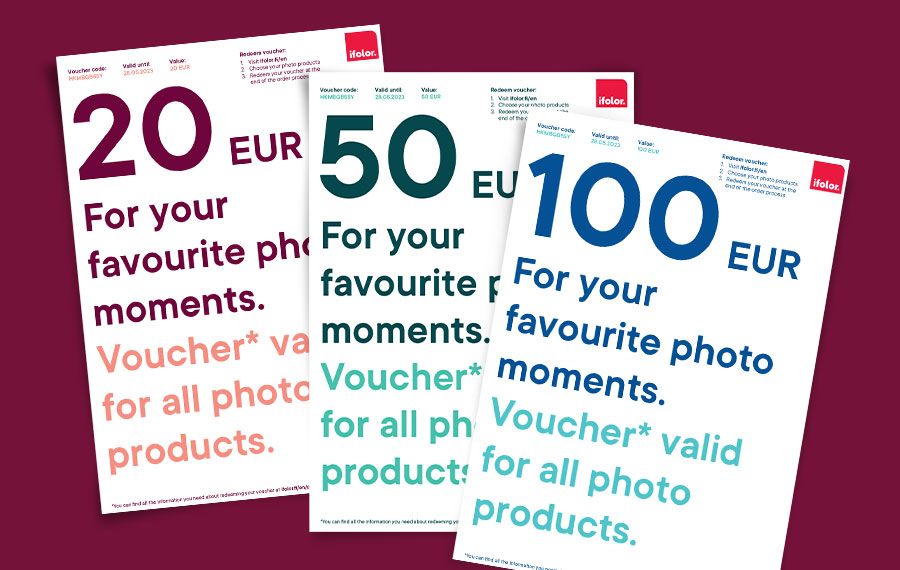 Order the ifolor gift voucher for 20, 50, or 100 euros to give your loved ones the freedom of choice. If the value of your voucher is higher than the total order amount, the remaining credit will be credited to your customer account. The remaining credit will automatically be deducted from a subsequent order. The recipient can place several orders.
