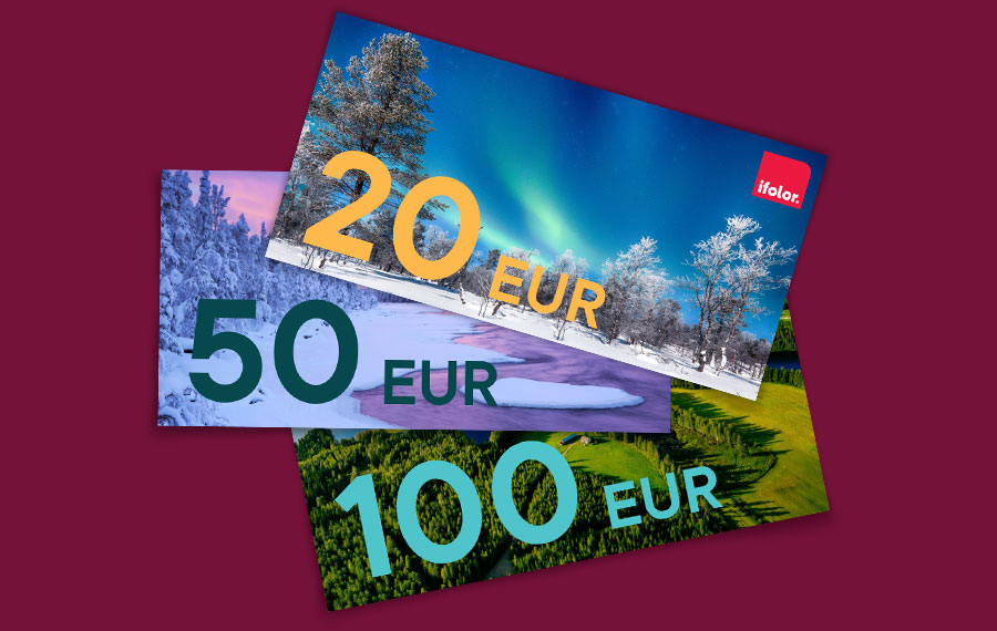 Order the ifolor gift voucher for 20, 50, or 100 euros to give your loved ones the freedom of choice. If the value of your voucher is higher than the total order amount, the remaining credit will be credited to your customer account. The remaining credit will automatically be deducted from a subsequent order. The recipient can place several orders.