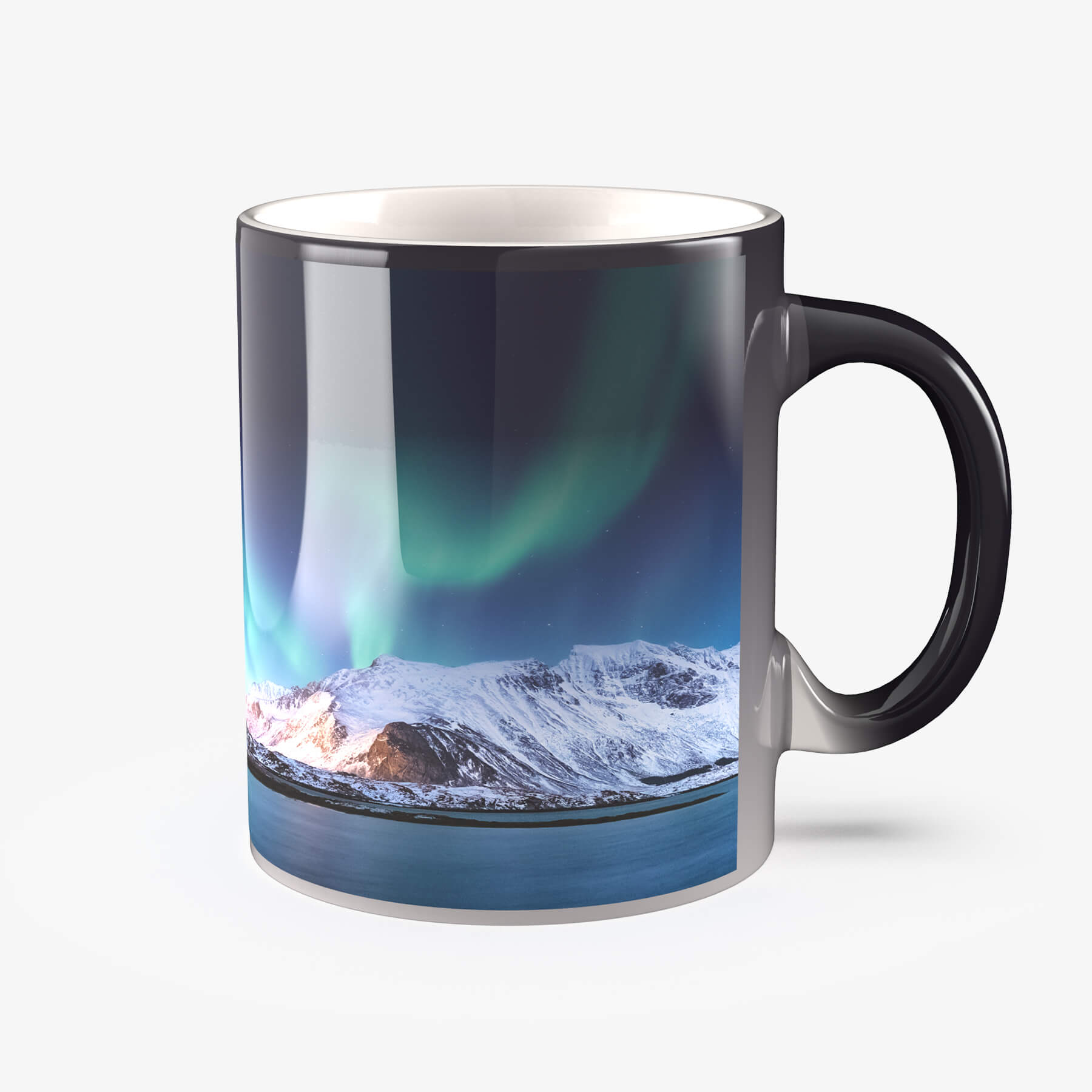 When designing the personalised heat changing mug, choose which side of the handle to place your image, so it works for either a left- or right-handed person. Alternatively, you can add a large panoramic image that covers the whole photo cup.