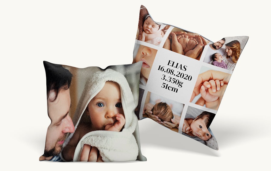 There are many different ways to design your photo cushion - you can print photos on both sides, create collages or add texts matching your photo.