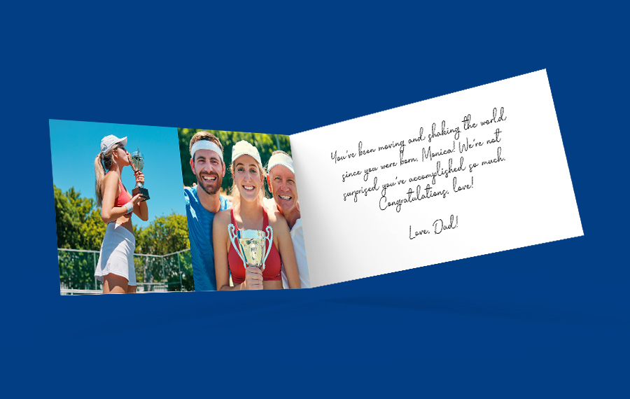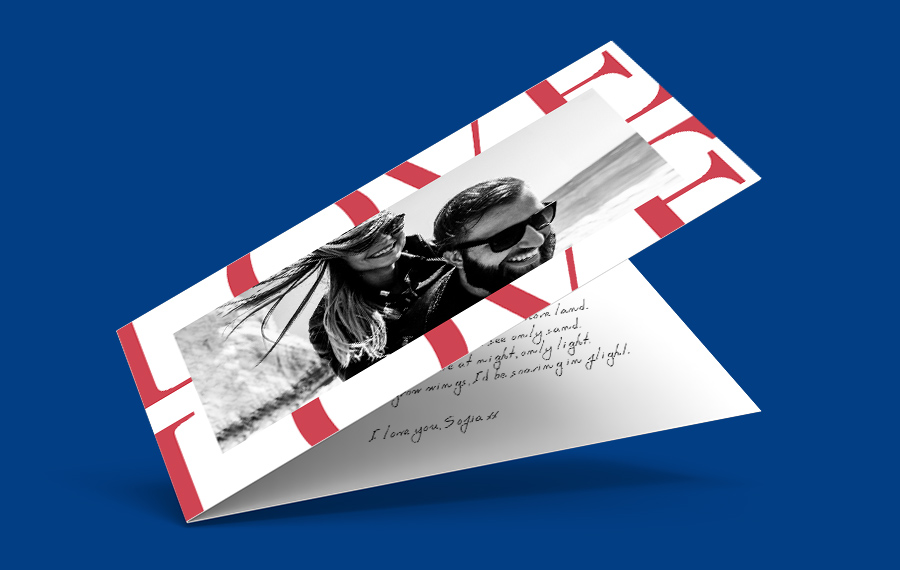 For a personalised design, you can print images and text on the front and inside the folded panoramic card. Alternatively, you can write on the inside by hand for a personal touch.