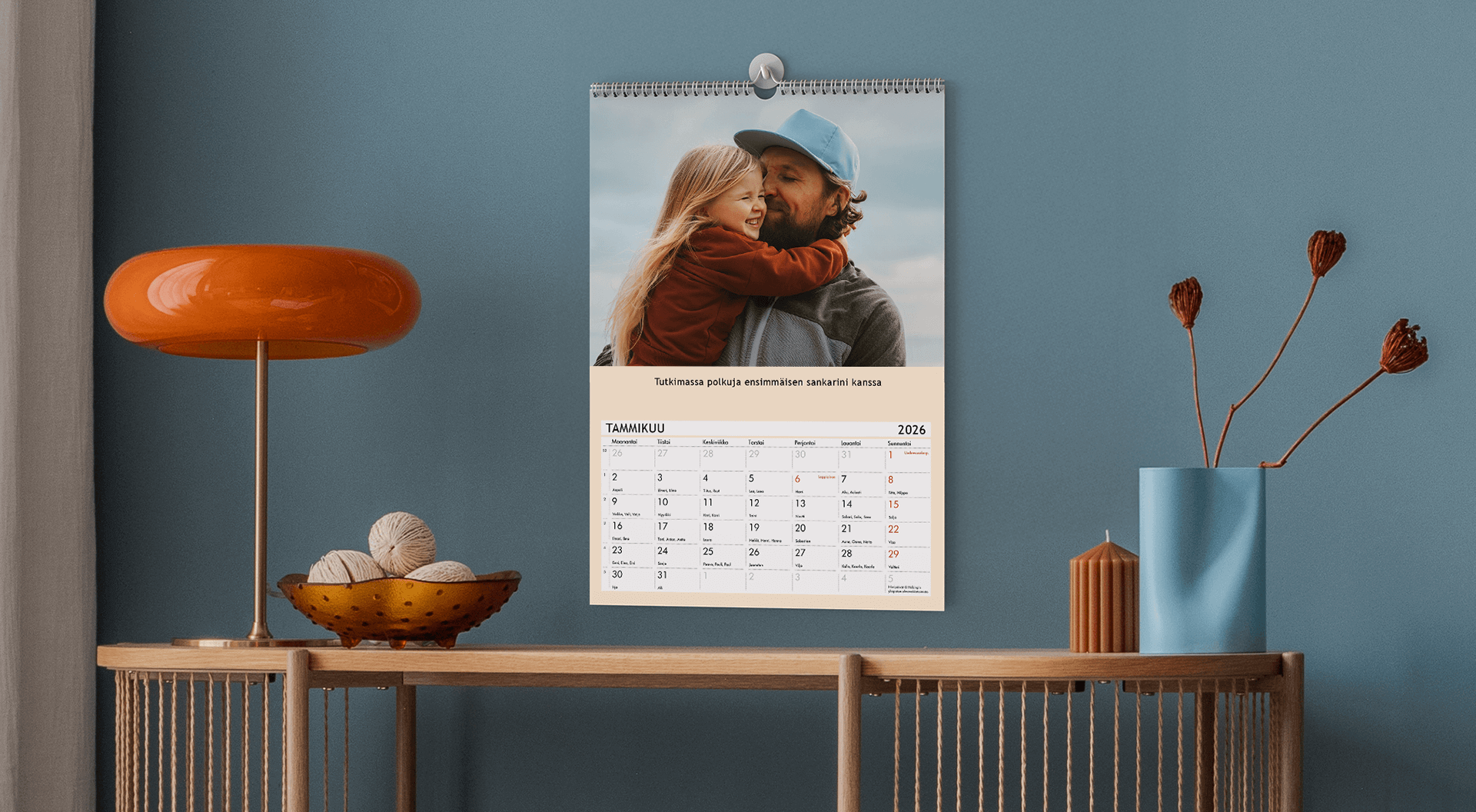 Seinäkalenterit ja kuukausikalenterit ovat monien rakastamia. Yksi ilon aihe oman kalenterin räätälöinnissä on se, että voit täyttää koko kalenterin kuvilla, jotka tekevät sinut erityisen onnelliseksi. Perhekuvia, muistoja matkoilta, elämän merkkipaaluja, lasten taideteoksia – jokainen sivu muistuttaa sinua asioista, joilla on merkitystä . Valitsemalla sopivat kuvat joka kuukaudelle saat pitää ilon, nostalgian ja inspiraation läsnä arjessa, läpi koko vuoden.
