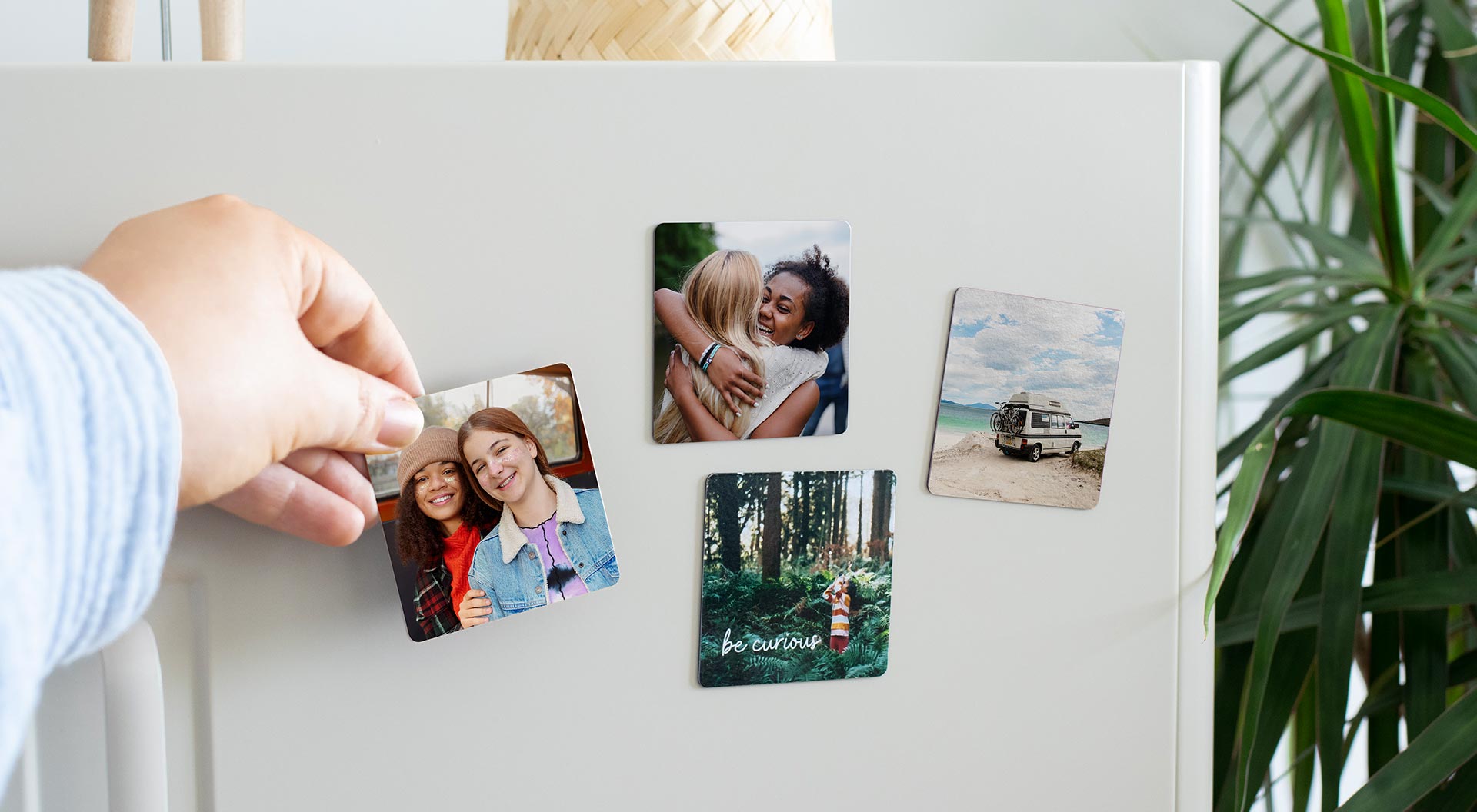 Omista kuvista toteutetut magneetit ovat täynnä lämmittävää vetovoimaa. Jääkaapin ovessa ne palauttavat elävästi mieleen yhdessä kokemanne hetket. Samalla lahja palvelee myös ystäväsi arkipäivän tarpeita, sillä magneetit ovat oivia apuvälineitä tärkeiden muistiinpanojen kiinnittämiseen.