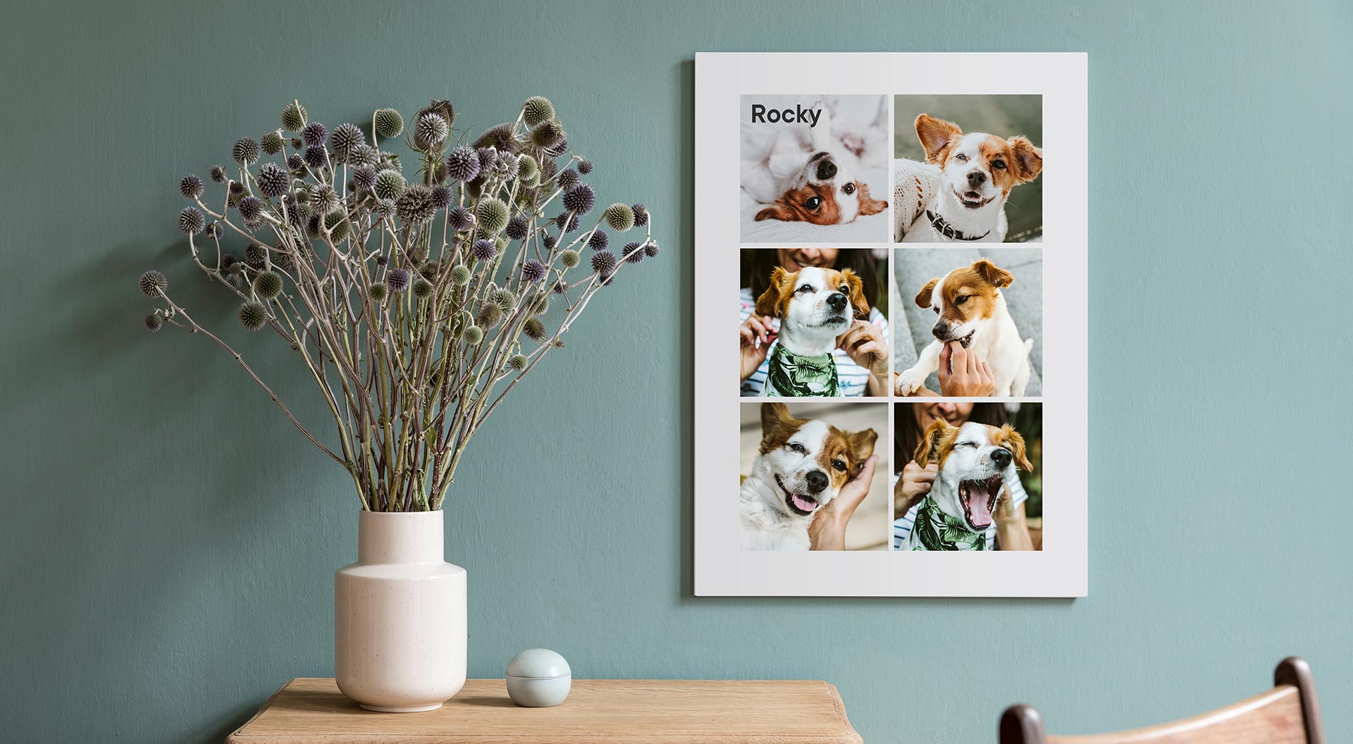 Minkä kuvan valitsisi tauluun tai kehystettäväksi, kun kamera on täynnä loistavia kuvia mainioista ilmeistä, hassuista asennoista tai hellyttävistä rapsutushetkistä? Kannattaa suunnitella useamman kuvan kollaasitaulu ifolorin Designer-ohjelmaa hyödyntäen. Mukaan voi lisätä lemmikin nimen tai jonkun niistä kymmenistä eri hellittelynimistä, joilla rakastasi kutsut. Näyttävän sisustustaulun saat esimerkiksi teettämällä sisustuskankaalle tulostettavan canvas-taulun, joka tuo kuvien värit ja tunnelman hyvin esille.
