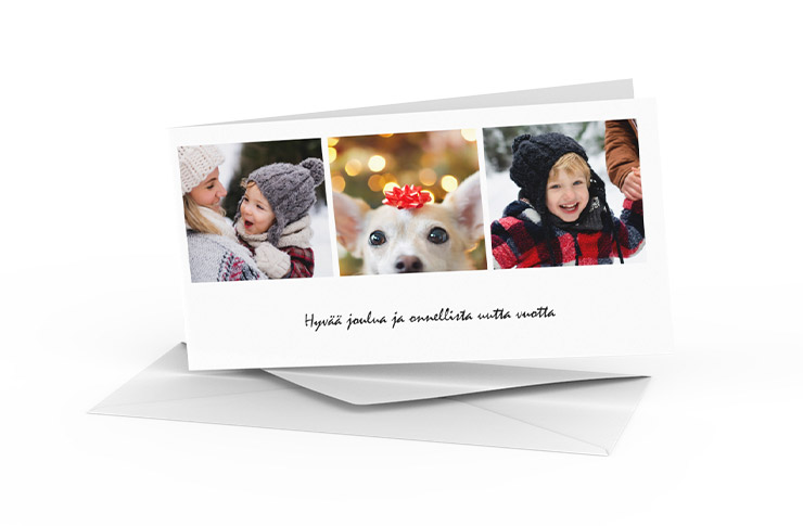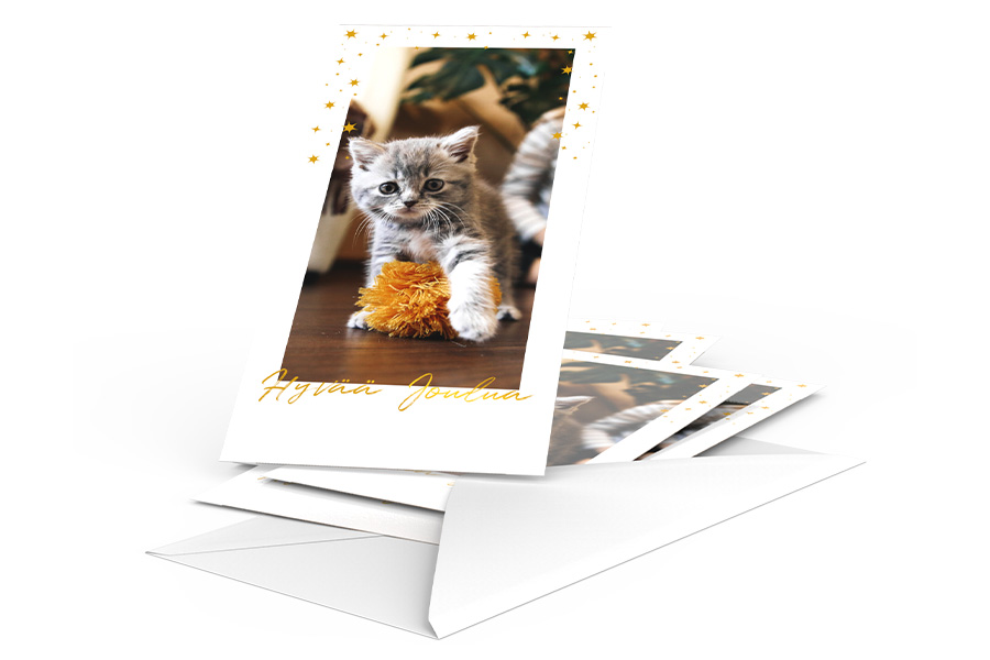 Tilaa suosituimmat joulukortit omasta kuvasta helposti 10 kappaleen settinä. Nämä joulukortit ovat asiakkaidemme suosikkeja!
