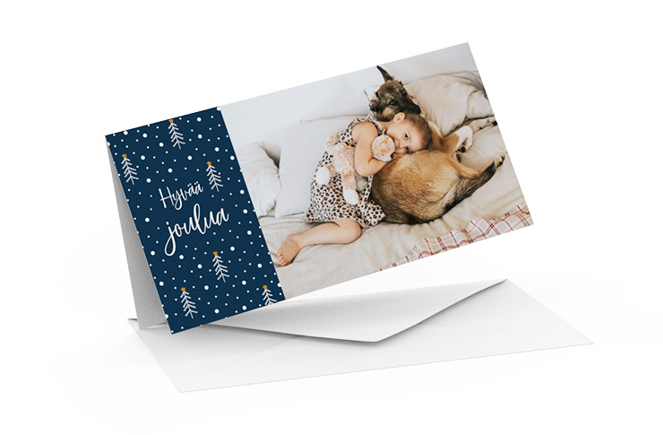 Kun joulukortin tekee itse, helposti omista kuvista, niistä tulee persoonallisia, hauskoja ja koskettavia. Valitset vain jonkun hauskan hetken omista kuvistasi ja olet jo melkein valmis.