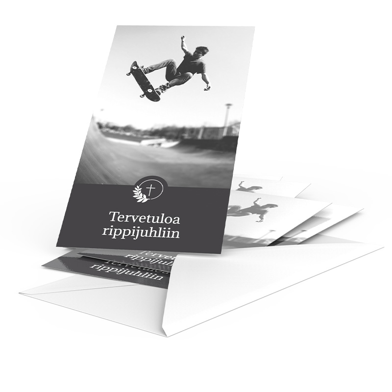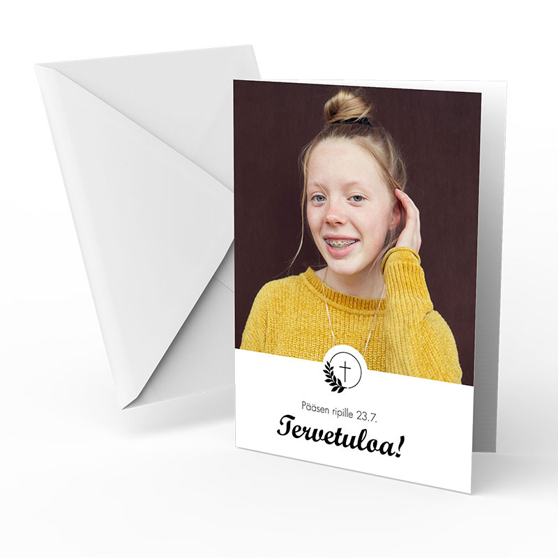 Konfirmaatiopäivänä nuoren aikuistumista juhlitaan yhdessä perheen, lähisuvun ja ystävien kesken. Tee kutsukortit rippijuhliin nuoren valokuvasta – tuoreesta tai ajasta, jolloin hän oli vielä pieni. Miten nopeasti hän onkaan kasvanut! Meiltä löydät valmiit kutsukorttipohjat rippijuhliin.