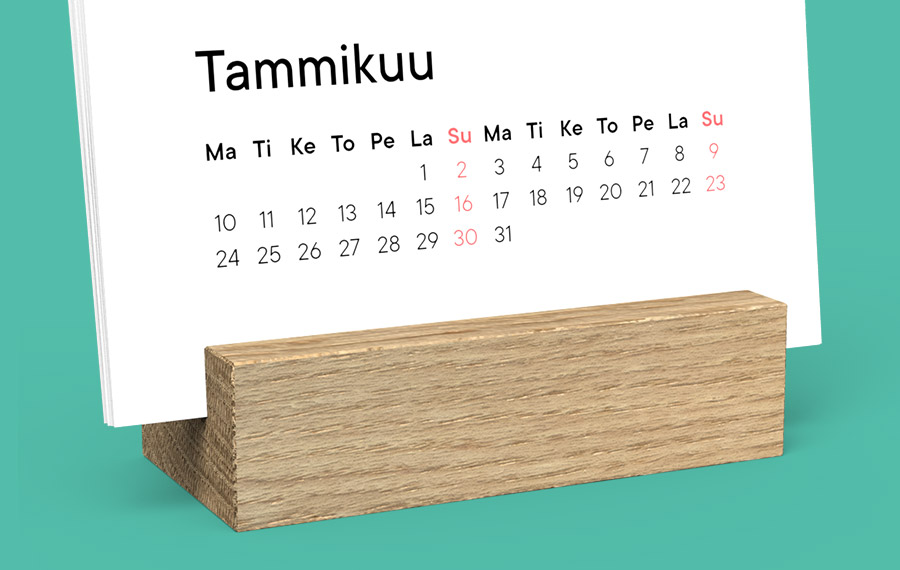 Pöytäkalenteri puutelineellä Ilman puutelinettä