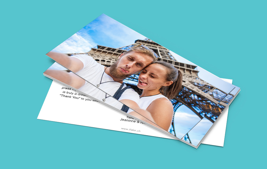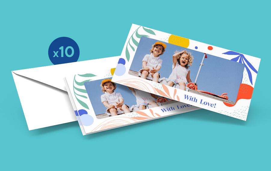 Omista valokuvista tehtävät kuvakortit ovat huippusuosittuja, eikä ihme! Valitse vain teemaan sopiva valokuva etupuolelle, asettele se valmiiseen mallipohjaan ja kirjota teksti painatusta varten. Hyvä koko 20 x 10 cm ja valmiit kirjekuoret viimeistelevät läheisiäsi ilahduttavat valokuvakortit.