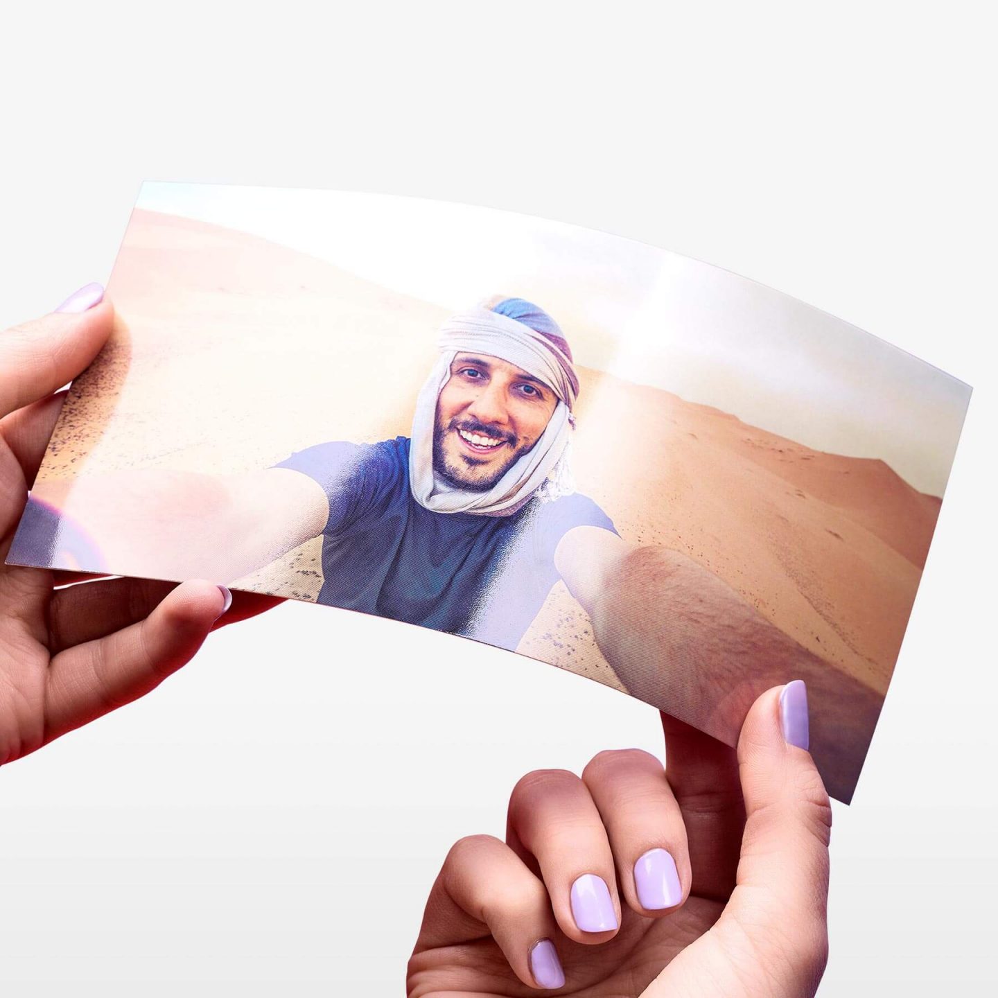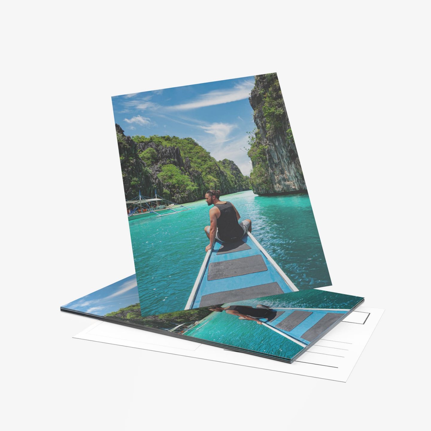 Voit valita postikorttisi joko perinteisessä koossa 10,7x15 cm tai leveämpänä panoraamapostikorttina koossa 20x10 cm. Panoraamapostikortti sopii erityisen hyvin maisemakuville!