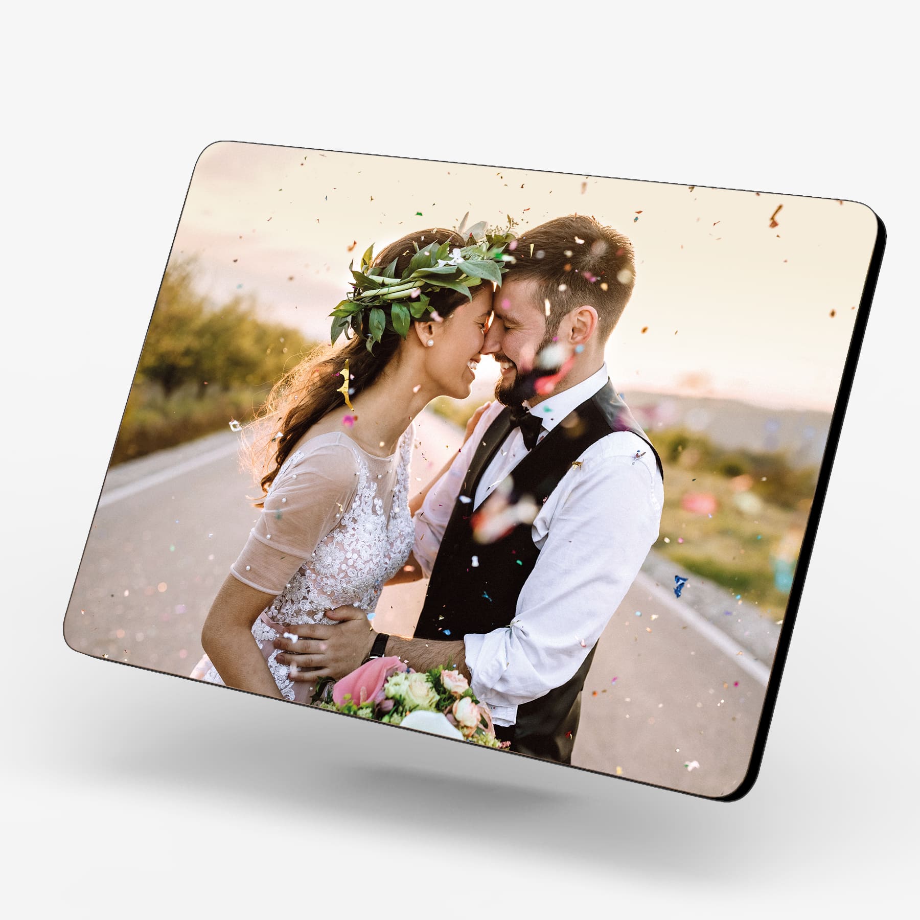Kehyskuva säilyy upeana ilman perinteistä lasilevyäkin, sillä kuvassa on UV-päällystetty kiiltävä kuvalaminointi. Sen ansiosta valokuvan värit loistavat täyteläisinä, eikä aurinko pääse niitä haalistamaan. Pinnan ansiosta kaunis kuvasi myös pysyy naarmuuntumattomana.