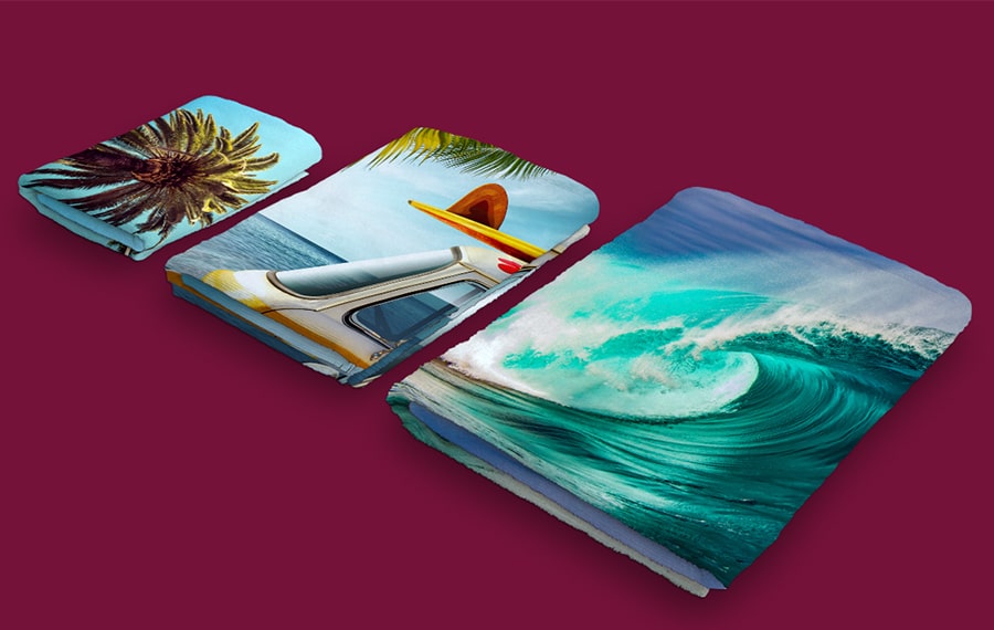 Jos pyyhkeeseen haluaa uniikin kuvan, tulee sen myös näkyä! Tämän vuoksi valmistamme pyyhkeen siten, että haluamasi kuva tulostuu toiselle puolelle pyyhettä koko pyyhkeen kokoiseksi, ilman minkäänlaisia reunoja tai marginaaleja. Vaikuttavaa!