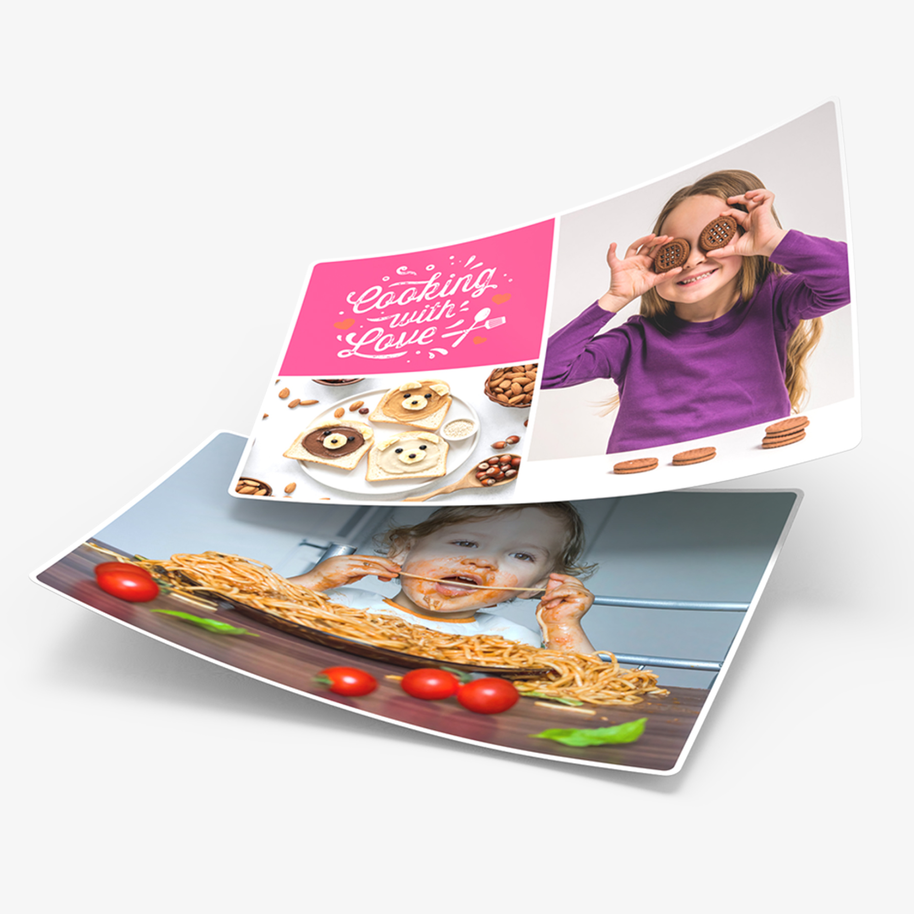 Tablettiin voit suunnitella joko useamman kuvan kollaasin tai laittaa vain yhden kuvan. Sovelluksemme ehdottaa automaattisesti hyvää sijoittelua kuvallesi. Voit itse halutessasi muokata kuvan kokoa ja järjestellä kuvia toivomaasi järjestykseen. Tabletteihin tulee aina selkeä, valkoinen kehys kuvan ympärille.