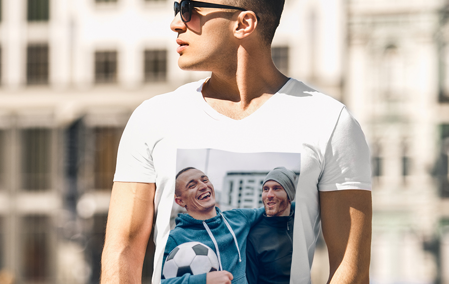 Valitse useammasta eri painatusmallista se sopivin juuri sinulle ja suunnittele oma t-paitasi. Valitsemasi valokuva painetaan suoraan t-paitaan, jotta kuvan laatu säilyy mahdollisimman hyvänä ja paita tuntuu mukavan pehmeältä käytössä. Suurin mahdollinen painatuksen koko on 305 x 406 mm, vaihdellen t-paidan koon ja mallin mukaan. Suoraan kankaaseen painamalla saadaan värien loisto sävyineen ja kontrasteineen säilymään terävänä ja aitona.