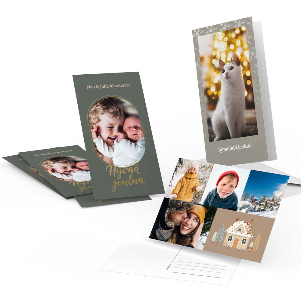 Olemme lisänneet useita uusia joulukorttipohjia seuraaviin korttimalleihin:
